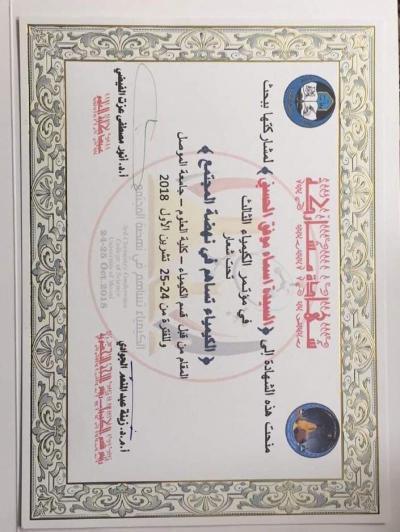 حضور ومشاركة تدريسين من كلية هندسة النفط والتعدين المؤتمر الثالث لقسم الكيمياء كلية العلوم جامعة الموصل