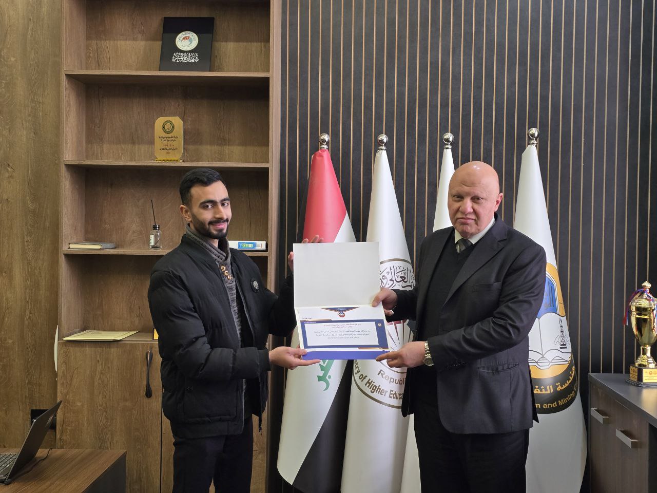 saadsaadi2026-01-15T08:42:35+03:00كرم عميد كلية هندسة النفط والتعدين، الأستاذ المساعد الدكتور معن حسن الماجد، الفرق المشاركة في مبادرة جسر الرحمة، إحدى المبادرات الإنسانية لجامعة الموصل، والتي نفذت بمشاركة الأقسام الثلاثة في الكلية: قسم هندسة المكامن النفطية، وقسم هندسة النفط والتكرير، وقسم هندسة التعدين. وشهدت الفعالية تكريم الفائزين بأفضل المشاريع، وهم طلاب قسم هندسة المكامن النفطية، وذلك بإشراف م.م. زيدون مهند خليل، المشرف على طلاب قسم هندسة المكامن النفطية، تقديرًا لتميزهم وجهودهم الفاعلة في إنجاح المبادرة وتحقيق أهدافها المجتمعية. ويأتي هذا التكريم في إطار دعم جامعة الموصل للمبادرات الطلابية التي تعزز العمل التطوعي وترسّخ روح التعاون مع المجتمع، بما يسهم في تأكيد الدور الإنساني [إقرأ المزيد]