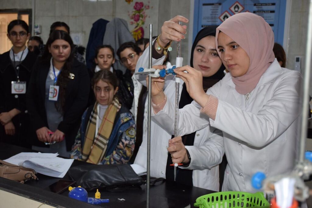 وكان في استقبال الوفد الأستاذ الدكتورة زينة عبد المنعم عبد المجيد، عميد الكلية، والأستاذ المساعد الدكتور مهند القزاز، معاون العميد للشؤون العلمية والاستاذ المساعد الدكتور هاني مهيدي ،معاون العميد للشؤون الادارية. وقد اصطحب الزوار في جولة شاملة تضمنت أروقة الكلية، بما في ذلك المختبرات والأقسام العلمية. وخلال الجولة، قدّم أعضاء الهيئة التدريسية شرحاً مبسطاً عن آلية عمل المختبرات، بالإضافة إلى تنفيذ بعض التجارب العلمية لإثراء التجربة التعليمية للطلاب.