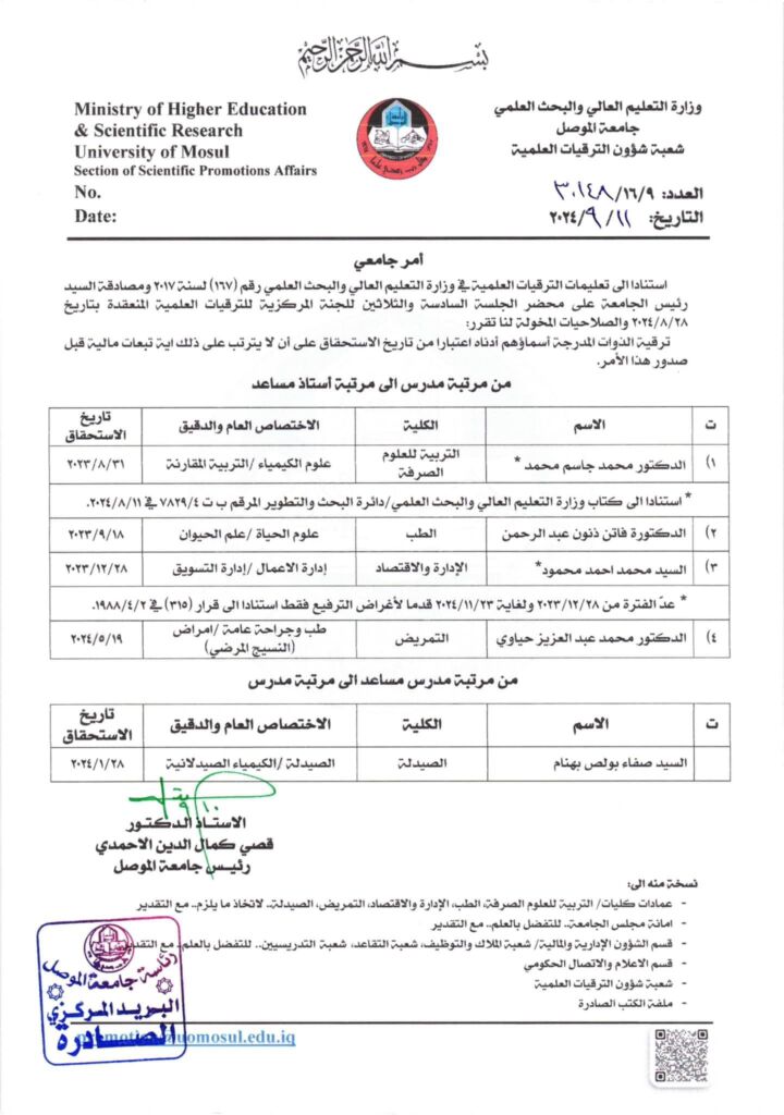 نظرا لقرب ابتداء العام الدراسي الجديد 2024 – 2025 ولتعريف الطلبة بالتوجيهات والتعليمات الخاصة بالمباشرة لطلبة جامعة الموصل الدراسات الأولية ندرج اليكم التعليمات والتوجيهات النافذه بهذا الخصوص .