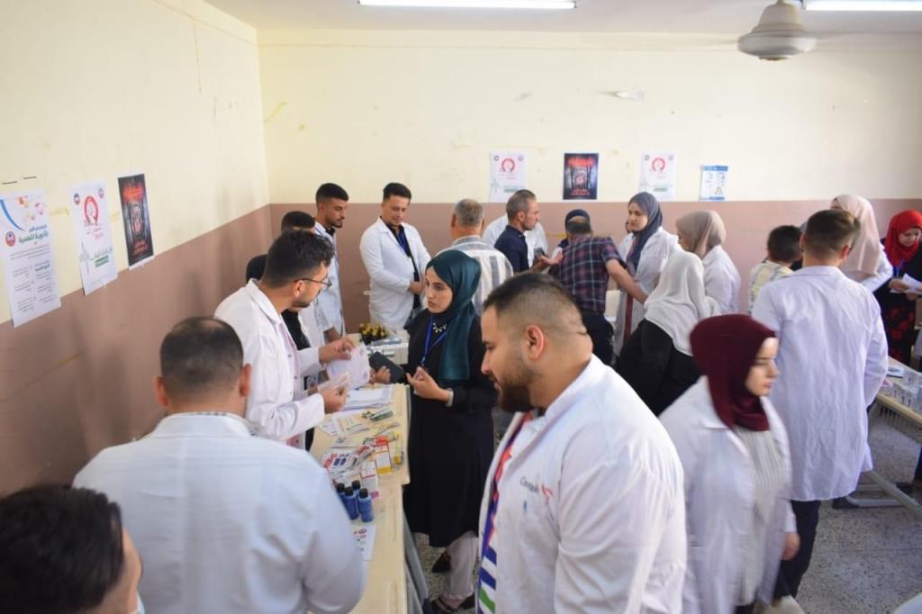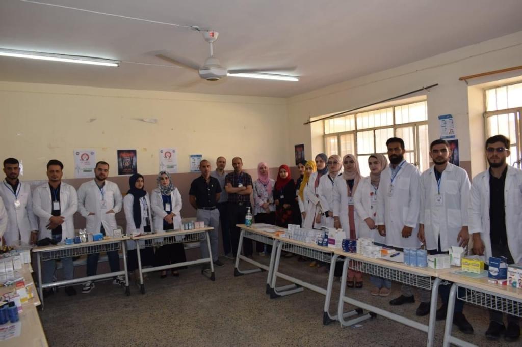 حيث كان أساتذة وطلبة كلية الصيدلة متواجدين لتقديم خدماتهم طوال فترة الممارسة الميدانية وبحضور واشراف مباشر من قبل السيدة عميد كلية الصيدلة الاستاذ المساعد الدكتورة زينة عبدالمنعم عبدالمجيد.