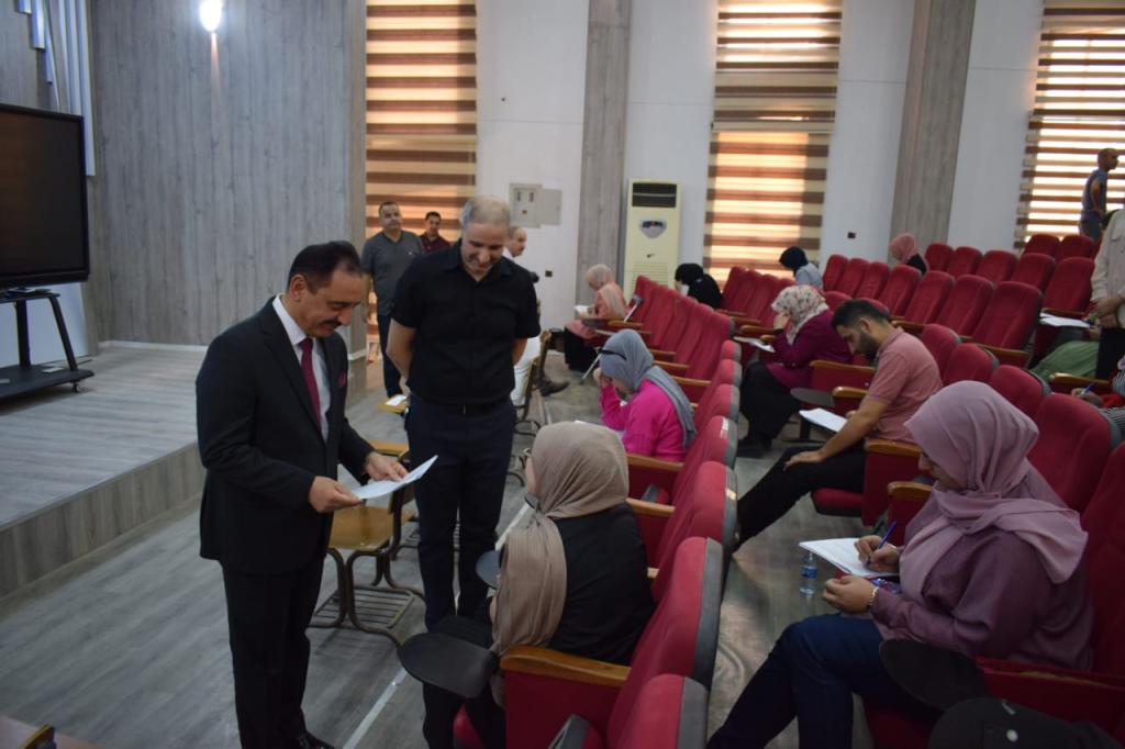 استمرار الامتحانات النهائية للدور الثاني في كلية الصيدلةتستمر الامتحانات النهائية للعام الدراسي ٢٠٢١ – ٢٠٢٢ / الدور الثاني في كلية الصيدلة لليوم الثاني على التوالي، حيث تم إجراء الامتحانات للمراحل الدراسية كافة اليوم الاحد الموافق ٤/ ٩/ ٢٠٢٢، وشهد الامتحان زيارة تفقدية للسيد رئيس جامعة الموصل الاستاذ الدكتور قصي كمال الدين الاحمدي المحترم لمتابعة سير العملية الامتحانية التي تجري وفقاً للتعليمات النافذة من رئاسة جامعة الموصل. وأكد السيد رئيس الجامعة على ضرورة الاستمرار بنفس الخطى التي تضمن انجاز تجربة الامتحانات في الكلية على الوجه الامثل و سير العملية الامتحانية بانسيابية و سلاسة، مثنيا على دور عمادة الكلية في توفير كافة المستلزمات الضرورية لاجراء الامتحانات و متمنيا لجميع الطلبة الممتحنين التوفيق و النجاح.