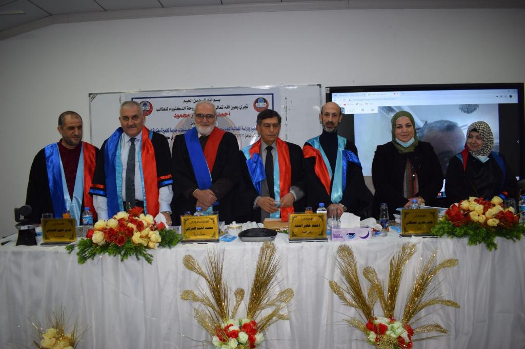 نوقشت في فرع الكيمياء الصيدلانية اطروحة الدكتوراه التي تقدم بها الطالب احمد عبدالجبار محمود .