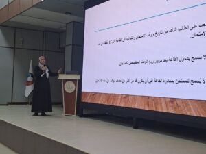 وتضمنت الدورة سلسلة من المحاضرات التوجيهية التي تناولت أبرز الإرشادات الخاصة بآليات الامتحانات في الكلية ، وبيان إجراءات الانضباط داخل القاعات الامتحانية ، بالإضافة إلى تقديم شرح تفصيلي لآلية الاجابة على ورقة الاجابة (Answer Sheet ) ، والطريقة الصحيحة لملئها ، مع تسليط الضوء على الأخطاء الشائعة وكيفية تجنبها ، كما شملت الدورة عرضا توضيحيا لعدد من النماذج الامتحانية لتدريب الطلبة على التعامل معها بدقة أثناء الامتحان.