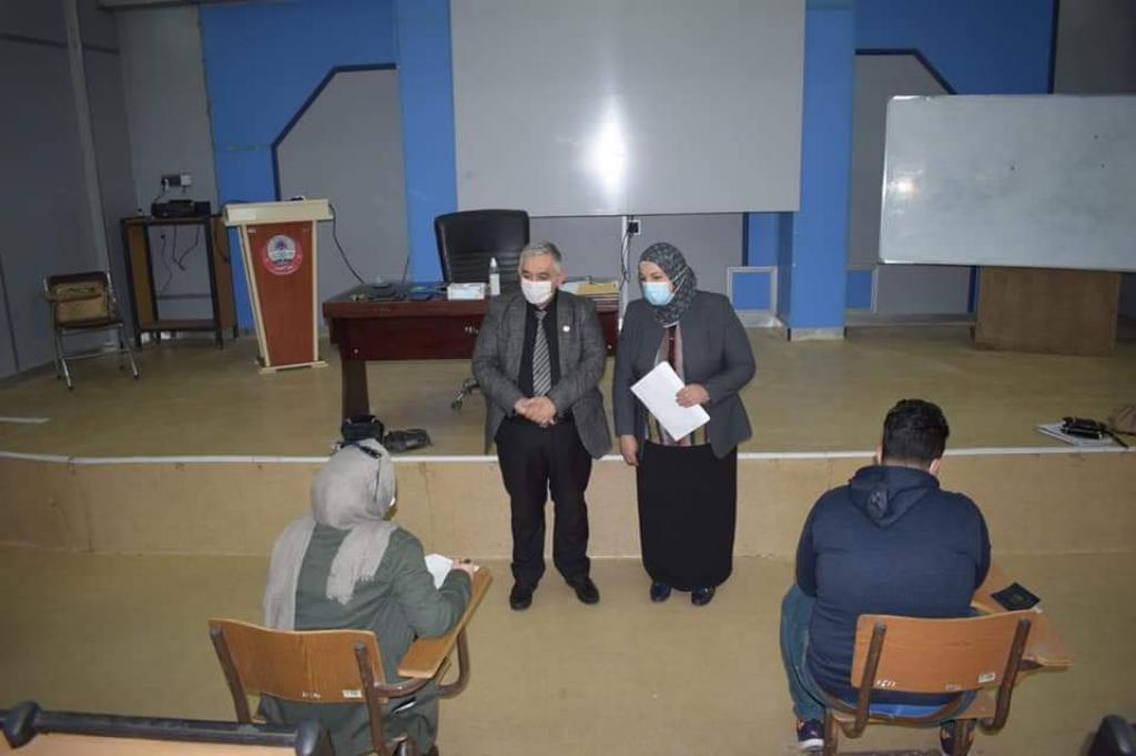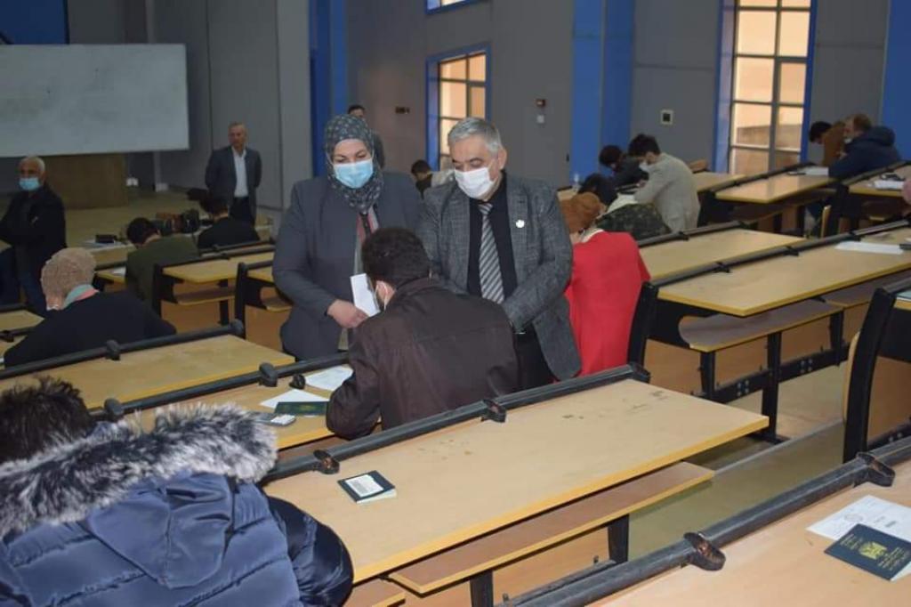 امتحان المعادلة لشهادة الصيدلة رقم 38استكمالاً لامتحان معادلة الشهادة الذي اجري في كلية الصيدلة الاسبوع الماضي جرى صباح اليوم الأربعاء الموافق ٩/ ١٢/ ٢٠٢٠ و على مدرج كلية الصيدلة امتحان الجزء النظري للمواد العملية المطلوبة لمعادلة شهادة كلية الصيدلة. حيث انطلق الامتحان في تمام الساعة التاسعة صباحاً بعد فحص المتقدمين للامتحان والتأكد من إجراءات التعقيم والسلامة و التباعد الاجتماعي وارتداء الكمامات والكفوف، وقد أشرفت السيدة عميد الكلية الاستاذ المساعد الدكتورة زينة عبدالمنعم عبدالمجيد المحترمة على سير الامتحان رافقها في ذلك السيد المعاون العلمي والسادة واعضاء اللجنة المكلفة بالاشراف على الامتحان . وشهد الامتحان زيارة السيد مساعد رئيس جامعة الموصل للشؤون العلمية الاستاذ الدكتور منير سالم طه حيث تفقد سير العملية الامتحانية وأداء اللجنة المكلفة بالاشراف على امتحان المعادلة وأكد على ضرورة توفير كل ماهو مطلوب لضمان أداء امتحان المعدلة بشكل دوري و بمستوى راقي مثنين على جهود كلية الصيدلة عمادةً و منتسبين في اداء هذه المهمة.تمنياتنا لجميع المتقدمين التوفيق والنجاح الدائم ان شاء الله..