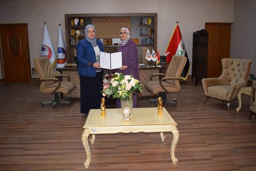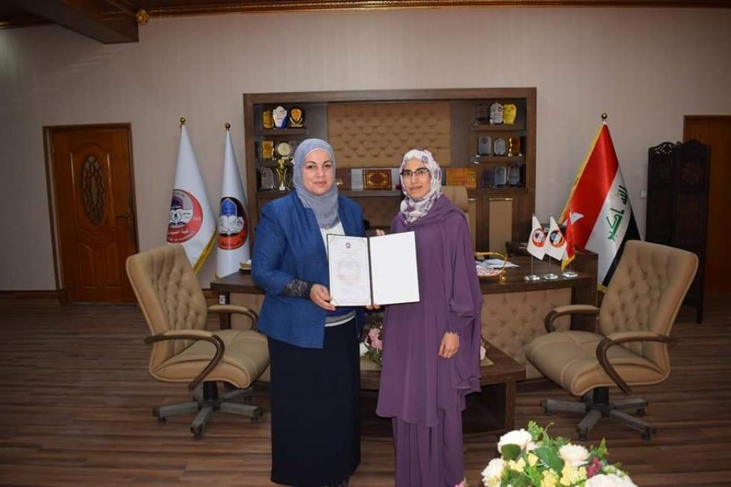 كرمت السيدة عميد كلية الصيدلة الاستاذ المساعد الدكتورة زينة عبدالمنعم عبدالمجيد طالبة المرحلة الخامسة رسل سالم عبدالله وذلك لحصولها على المركز الأول في مسابقة حفظ القرآن التي اقامتها شعبة الارشاد النسوي في دائرة الأوقاف في محافظة نينوى وبأشراف المركز العراقي للقران الكريم ( مسابقه حافظة ام الربيعين) حيث احتلت الطالبة رسل المركز الأول شارك بين اكثر من ٣٥ مشارك في المسابقة.وقد اشادت السيدة العميد بهذا الإنجاز المتميز للطالبة رسل مؤكدة دعمها لكل طلبة الكلية لتحقيق مثل هذه الانجازات الرائعة و متمنينة لها ولجميع طلبة كلية الصيدلة دوام التوفيق