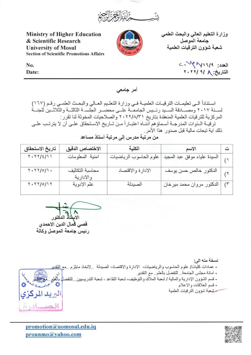 مبارك لكم ولكليتنا هذا الانجاز العلمي والى مزيد من النجاح والتقدم.