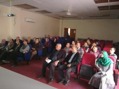 ضمن سلسلة الفعاليات العلمية المقامة في كلية الصيدلة، وبحضور السيد عميد كليه الصيدلة المحترم ا.م.د ياسر فخري مصطفى والسيد معاون العميد للشؤؤن الاداريه م.د. حارث القزاز والسيد معاون العميد للشؤون الإدارية م.د. محمد عبدالكريم وعدد من الأساتذة الافاضل، أدار المدرس المساعد مهند عماد القزاز حلقة علمية حول موضوع بحثه للدكتوراه والتي حملت عنوان" Novel natural alkaloid Jeratinine B : antitumor activity and mechanism of action" ومن الجدير بالذكر أن التدريسي مهند عماد هو أحد الكفاءات العلمية العائدة حديثا للوطن، حيث أنهى دراسة الدكتوراه في جامعة نوتنغهام البريطانية. وتأتي هذه الحلقة العلمية ضمن الانشطة العلمية التي تحرص عليها كلية الصيدلة من اجل ضمان مستوى علمي متميز لكوادرها التدريسية.