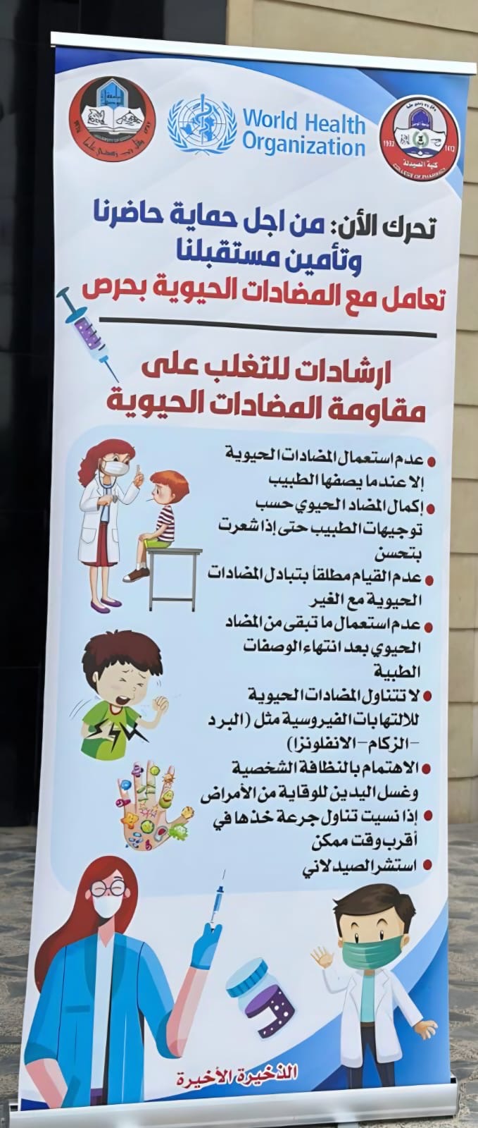 وتأتي هذه الفعالية انسجاماً مع أهداف التنمية المستدامة، ولاسيما الهدف الثالث (الصحة الجيدة والرفاه) من خلال تعزيز الممارسات الصحية السليمة، والهدف الرابع (التعليم الجيد) عبر نشر الوعي والمعرفة الصحية بين طلبة المؤسسات التعليمية، بما يسهم في دعم السلامة الدوائية والحفاظ على فاعلية المضادات الحيوية للأجيال القادمة.
