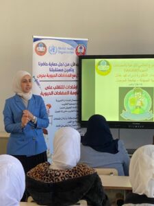 كما تم خلال الزيارة تقديم ارشادات صحية للطالبات حول اساليب الوقاية من العدوى والحد من انتشارها ، بالإضافة إلى توزيع المعقمات والمطويات التوعوية التي احتوت على معلومات مبسطة حول طرق تقليل مقاومة الميكروبات للمضادات الحيوية وتعزيز السلوكيات الصحية السليمة.