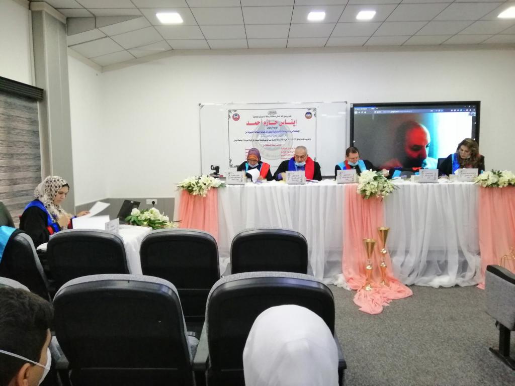 و قد شهدت المناقشة حضور جمع من اساتذة كلية الصيدلة و جامعة الموصل و طلبة الدراسات العليا في الكلية.