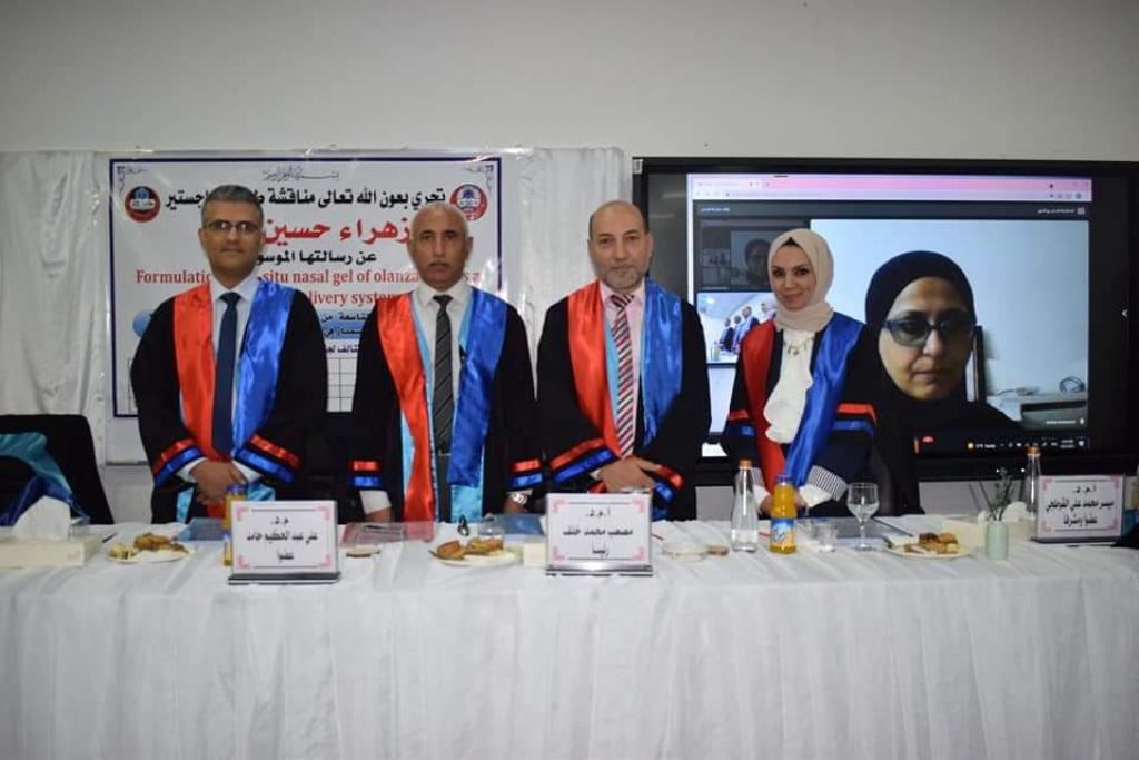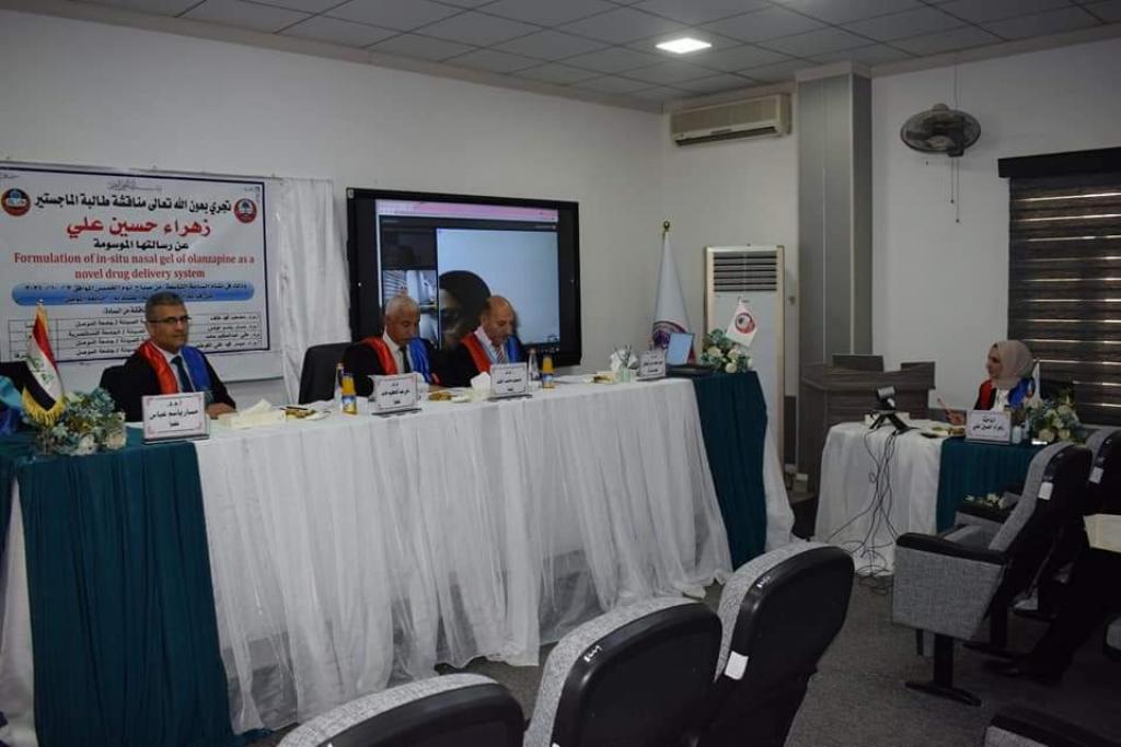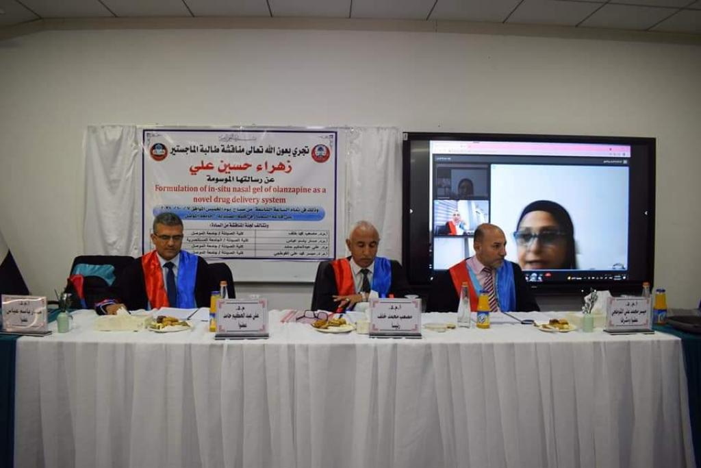 نوقشت في كلية الصيدلة صباح اليوم الخميس ٧/ ١٠/ ٢.٠٢١ رسالة الماجستير التي تقدمت بها الطالبة زهراءوالتي جاءت تحت عنوان”صياغة هلام الاولانزابين الانفي الذي يتشكل موقعيا كنظام مبتكر للتوصيل الدوائي”تهدف الدراسة إلى تحضير مستحلب النانو من عقار أولانزابين ودمجه في هلام يتشكل موضعيا لأيصال الدواء عن طريق الأنف، حيث سيوفر هذا التوصيل الأنفي لأولانزابين استهدافًا محسّنًا للدماغ ، ويطيل وقت التلامس مع الغشاء المخاطي للأنف وبالتالي يعزز التأثير العلاجي مع تقليل الآثار الجانبية المحتملة.بينت الدراسة أن الهلام المحضر و الحاوي على مستحلب النانو أظهر تأثيرًا مضادًا للذهان مشابهًا لتأثير عقار مضاد للذهان معروف وهو الهالوبيريدول ، عند إعطائه داخل الصفاق في حيوانات المختبر . كما أظهرت الدراسة توافق عقار اولانزابين مع السواغات الأخرى المستخدمة في الصيغة. وخلصت الدراسة إلى أن تحضير عقار أولانزابين بشكل هلام انفي يحوي على مستحلب النانو يمكن أن يعد نظامًا واعدًا لتوصيل الأدوية لاستخدامه مع العقارات الذائبة في الدهون لتحقيق توصيل مباشر من الأنف إلى الدماغ، كما توصي الدراسة بإجراء مزيد من الأختبارات حول تراكم عقار الأولانزابين في الدماغ.ترأس لجنة المناقشة السيد رئيس فرع الادوية والسمومالاستاذ المساعد الدكتور مصعب محمد خلف، كما ضمت لجنة المناقشة كل من الاستاذ المساعد الدكتور مسار باسم عباس من الجامعة المستنصرية (عضواً) والمدرس الدكتور علي عبدالحكيم حامد من فرع الصيدلانيات (عضواً) والسيد عميد كلية الصيدلة / جامعة نينوى الاستاذ المساعد الدكتور ميسر محمد علي القوطجي ( عضواً و مشرفاً).وقد شهدت المناقشة حضور عدد كبير من اساتذة جامعة الموصل و الباحثين المهتمين بالمجال الطبي و الصيدلاني و طلبة الدراسات في كلية الصيدلة.