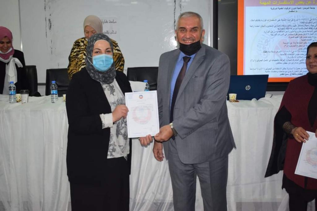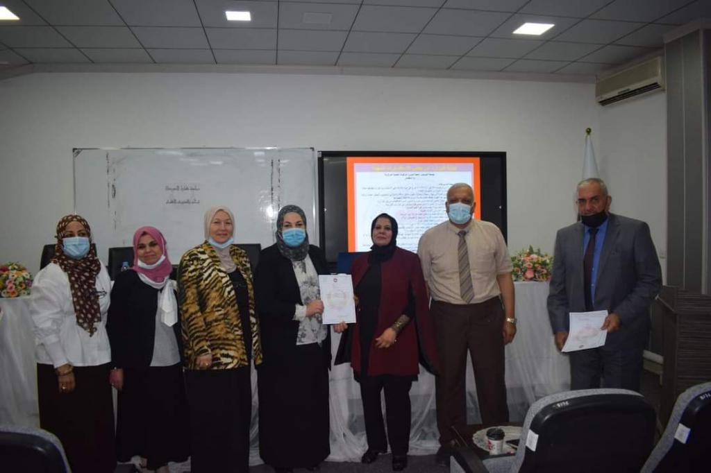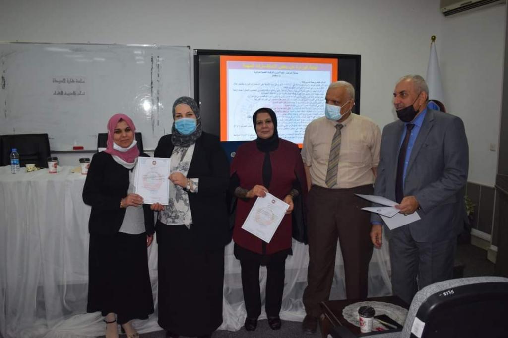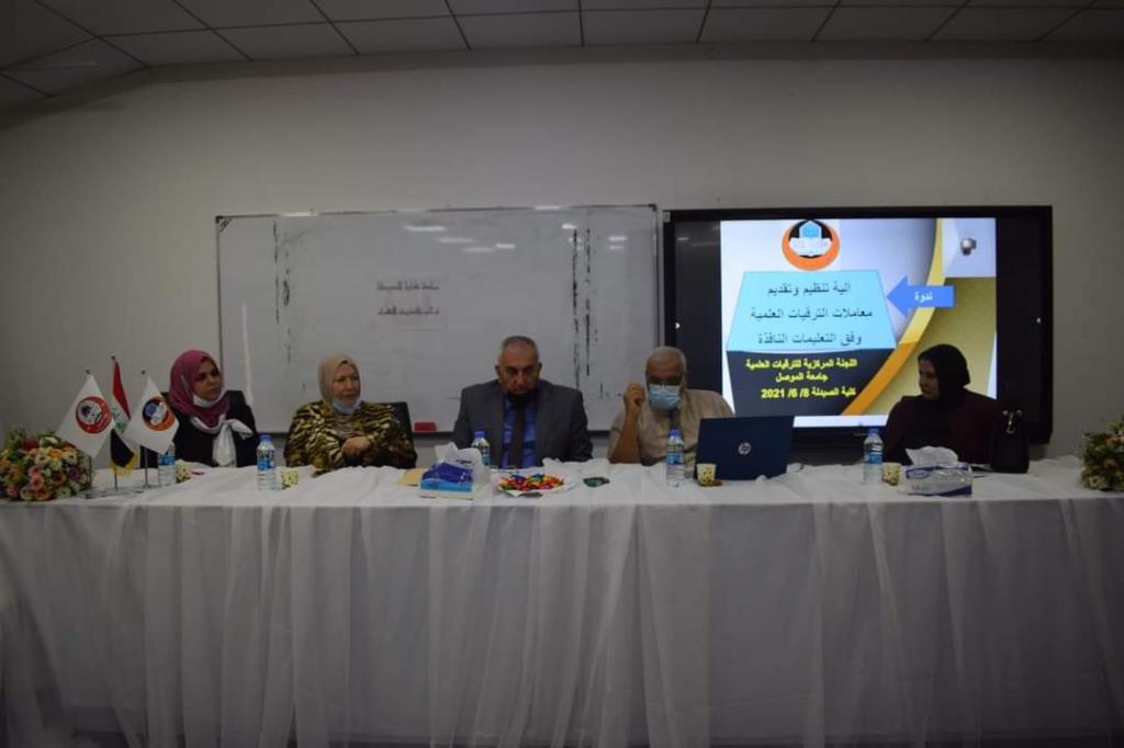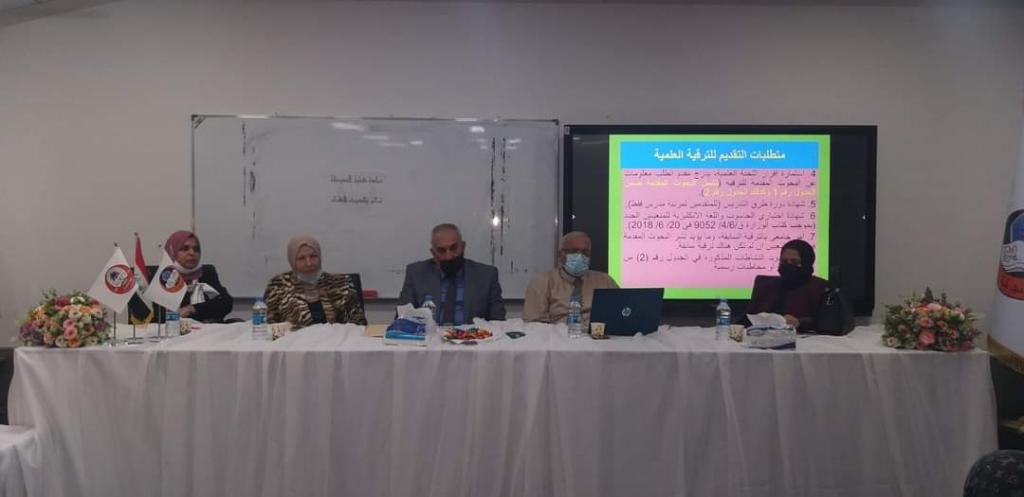 اقامت لجنة الترقيات في كلية الصيدلة الثلاثاء ٨/ ٦/ ٢٠٢١ ورشة عمل حول التعليمات الجديدة للترقيات العلمية استضافت فيها كل من الاستاذ الدكتور جاسم محمد عبدالجبار رئيس اللجنة المركزية للترقيات العلمية في جامعة الموصل مع بعض اعضاء اللجنة المركزية للترقيات و السيدة هيفاء منسقة عمل لجنة الترقيات المركزية في رئاسة جامعة الموصل. تم خلال ورشة العمل مناقشة التعليمات الجديدة للترقية العلمية و التأكيد على تذليل المعوقات التي قد تطرأ أثناء ترويج معاملات الترقية. و قد حضرت الندوة السيدة عميد كلية الصيدلة الاستاذ المساعد الدكتورة زينة عبدالمنعم عبدالمجيد و معاونها الاداري والسيد رئيس لجنة الترقية فضلا عن تدريسيي الكلية واعضاء الشعب و الوحدات الادارية. و قد شكرت السيد العميدة جميع القائمين على انجاز هذه الندوة العلمية وتم تكريمهم بكتاب شكر وتقدير من قبلها.ومن الله التوفيق