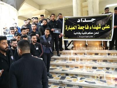 كلية الصيدلة جامعة الموصل تنظم وقفة حداد لقراءة سورة الفاتحة ترحماً على شهداء فاجعة الموصل