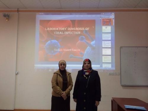 حضور كل من د. مي عطا الله الجماس (رئيس فرع العلوم المختبرية السريرية)، د. مروة هاشم، م.م. اسراء محمد عادل دورة التقنيات المختبرية الحديثة في حقل الاحياء المجهرية ضمن دورات التعليم المستمر في كلية طب نينوى بتاريخ 2014/3/5