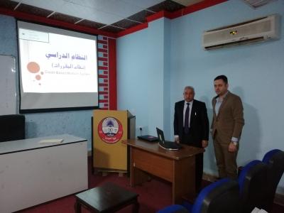 نظّمت كلية الصيدلة في جامعة الموصل صباح يوم الاربعاء الموافق ( ٢٠١٩/٤/١٠) ورشة عمل حول آلية تطبيق نظام المقررات، استهدفت الملاكات التدريسية في كلية الصيدلة والتي أقيمت على قاعة السمنارات في الكلية وبحضور السيدة عميد كلية الصيدلة الاستاذ المساعد الدكتورة زينة عبدالمنعم عبد المجيد والسيد المعاون الإداري م.د.حارث خالد محمد والسيد المعاون العلمي م.د.محمد عبد الكريم يونس وعددً من الاساتذة والتدريسيين في الكلية…وقدّم محاضرة الورشة الأستاذ المساعد فالح عبدالحافظ السنجري و د.فواز عبدالغني مصطفى رئيس اللجنة الامتحانية وم.م.لؤي احمد محمد مدير التسجيل ،حيث تم خلال الورشة عرض بعض المقررات الإجبارية و الإختيارية المقترحة لطلبة كلية الصيدلة مع ترميزها المقترح و بعض النماذج المعتمدة للتسجيل و الإضافة و الحذف للمقررات و بطاقة الطالب و ما تحتويه من معلومات، كذلك المستويات الدراسية المختلفة و نموذج المتابعة المستمرة للطالب، كما جرى خلال الورشة مناقشة الإشكاليات المتعلقة بتطبيق المنهج و الإستعدادات الجارية في كلية الصيدلة لهذا الغرض.