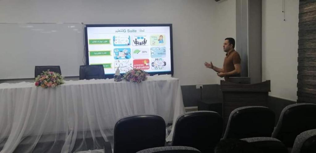 محاضرة حول التعليم الإلكترونيضمن نشاطات التعليم المستمر و على قاعة بن البيطار في كلية الصيدلة القى السيد مسؤل الشؤون العلمية الدكتور فواز عبدالغني مصطفى صباح اليوم الاحد الموافق٤/ ١٠/ ٢٠٢٠ محاضرة علمية حول استخدام ال G suite و محركات البحث في التعليم الإلكتروني وتأتي هذه المحاضرة ضمن سلسلة من المحاضرات التي ستجري في كلية الصيدلة خلال هذا الشهر في إطار استعدادات الكلية للعام الدراسي 2020-2021 و الذي سيتم الاعتماد فيه على التعليم المدمج. و شهدت المحاضرة حضور السيدة عميد الكلية و المعاون العلمي و لفيف من أساتذة كلية الصيدلة.