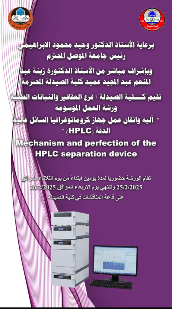برعاية الاستاذ الدكتور وحيد محمود الابراهيمي رئيس جامعة الموصل، وبإشراف عميد كلية الصيدلة الاستاذ الدكتورة زينة عبد المنعم عبد المجيد، وتنفيذاً للخطة الوطنية الثالثة للمرأة والسلام، ركيزة (الحماية والوقاية) لعام ٢٠٢٥.