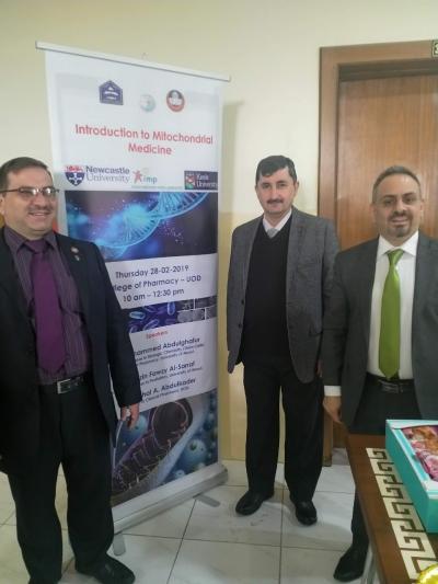 ضمن برنامج طب المايتوكوندريا الذي ترعاة جامعة الموصل قام الأستاذ المساعد الدكتور محمد عبد الغفور القطان التدريسي في كلية الصيدلة ومنسق برنامج طب المايتوكوندريا العالمي بالقاء محاضرة في الندوة التعريفية الثالثه والتي أقيمت في يوم ٢٨ شباط ٢٠١٩ بالتعاون مع جامعة دهوك كلية الصيدله وبمشاركة الاستاذ المساعد الدكتور مازن محمود فوزي من كلية الطب بجامعة الموصل و المدرس المساعد منها عبد القادر من كلية الصيدلة بجامعة دهوك