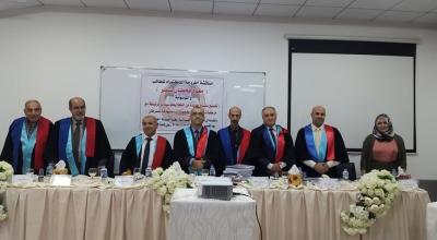 شهد اليوم الخميس الموافق 25/10/2018 مناقشة أطروحة الدكتوراه الموسومة "تصنيع سلسلة جديدة من الكلايكوسايدات المرتبطة مع مركبات البايروزول كمادات مستهدفة للسرطان" في رحاب كلية الصيدلة وعلى قاعة المناقشات رقم 5. حيث نوقشت أطروحة الدكتوراه للطالب معاذ قحطان شيت من قبل اللجنة المكونة بالأمر الجامعي من الاستاذ الدكتور هاشم جلال عزيز رئيسا، والاستاذ الدكتور رافد كمال جميل عضوا، والاستاذ الدكتور عبدالوهاب جعفر الحمداني عضوا، والاستاذ المساعد الدكتور عمار عبدالرزاق كبة عضوا والاستاذ المساعد الدكتور ياسر فخري مصطفى عضوا، وإشراف وعضوية كل من الاستاذ الدكتور عدنان عثمان عمر والاستاذ المساعد نهاد عبد الوهاب الاتروشي. استهلت المناقشة بعرض موجز من قبل طالب الدكتوراه لأهم محاور اطروحته، وتلى ذلك طرح الأسئلة من قبل السادة أعضاء لجنة المناقشة الذين اثنوا على الجهد المتميز، وبذلك استحق الطالب معاذ قحطان شيت حصوله على شهادة الدكتوراه في اختصاص (الكيمياء الصيدلانية) وبتقدير إمتياز.حضر المناقشة السيد عميد كلية الصيدلة الأستاذ المساعد الدكتورة زينة عبدالمنعم عبدالمجيد والسادة معاوني العميد للشؤون الإدارية والعلمية بالإضافة الى كوكبة طيبة من أساتذة الكلية.
