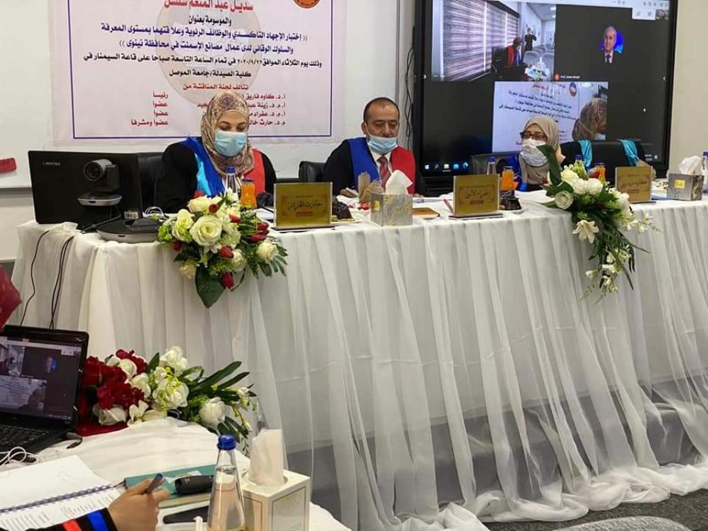 مناقشة رسالة الماجستير الموسومة “اختبار الإجهاد التأكسدي والوظائف الرئوية و علاقتهما بالمعرفة و السلوك الوقائي لدى عمال مصانع الأسمنت في محافظة نينوى “