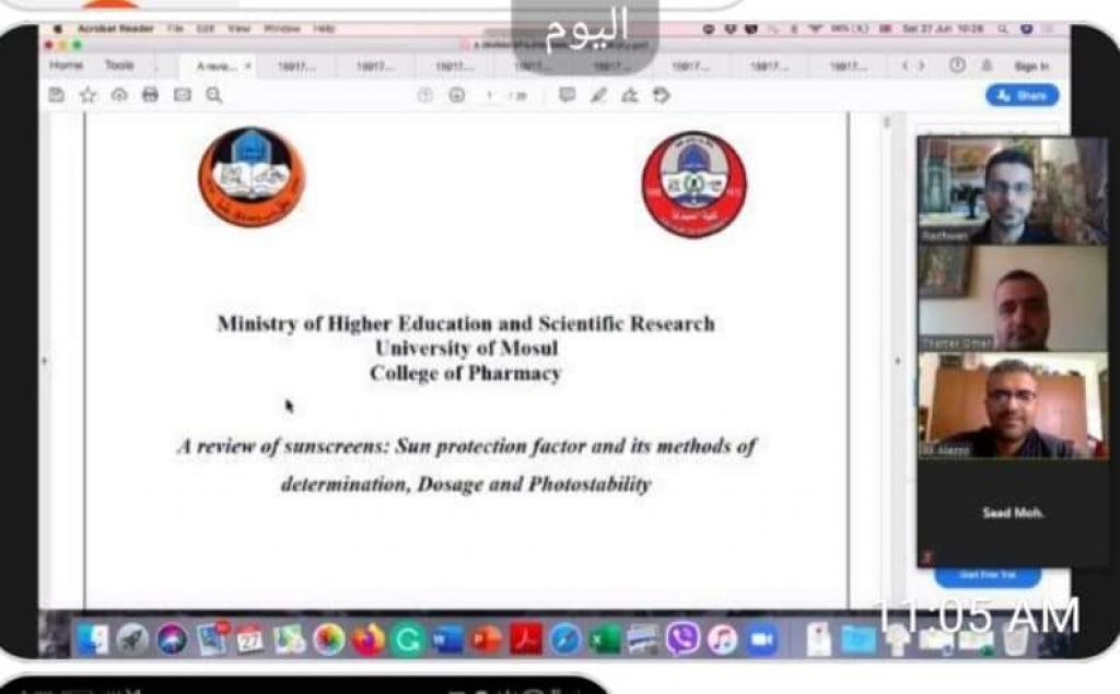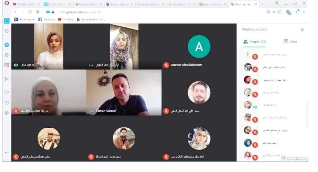 مناقشة مشاريع التخرج لطلبة المرحلة الخامسةتنافس طلبة المرحلة الخامسة في كلية الصيدلة هذا اليوم السبت الموافق ٢٠٢٠/٦/٢٧ في عرض جهودهم العلمية المتميزة من خلال مناقشة بحوث التخرج للعام الدراسي 2020/2019 وذلك من خلال منصة ال Meet الالكترونية اذ شاركت ستة لجان علمية متخصصة من الفروع العلمية في الكلية من الاساتذة التدريسيين الاختصاص في مناقشة ثمان وخمسون بحثا علميا في مختلف الاختصاصات الصيدلانية وابرزت المناقشات الجهد والمستوى العلمي الراقي لطلبة الكلية ومشرفيهم وبهذه المناسبة تثمن عمادة الكلية الجهود العلمية المخلصة المبذولة من قبل الطلبة والتدريسيين لرفعة سمعة كليتهم عاليا وكما تتمنى لطلبة المرحلة الخامسة الموفقية والنجاح في مسيرتهم العلمية خدمة لبلدنا الحبيب..