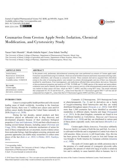 في تألق مستمر لاساتذة كلية الصيدلة/جامعة الموصل, نشر السيد وكيل العميد ا.م.د. ياسر فخري مصطفي بحث منفرد واخر مشترك مع اثنان من اساتذة كلية الصيدلة (م.م.زينة صديق و م.م.معاذ قحطان) في مجلات علمية رصينة مصنفة ضمن مستوعبات Scopus.