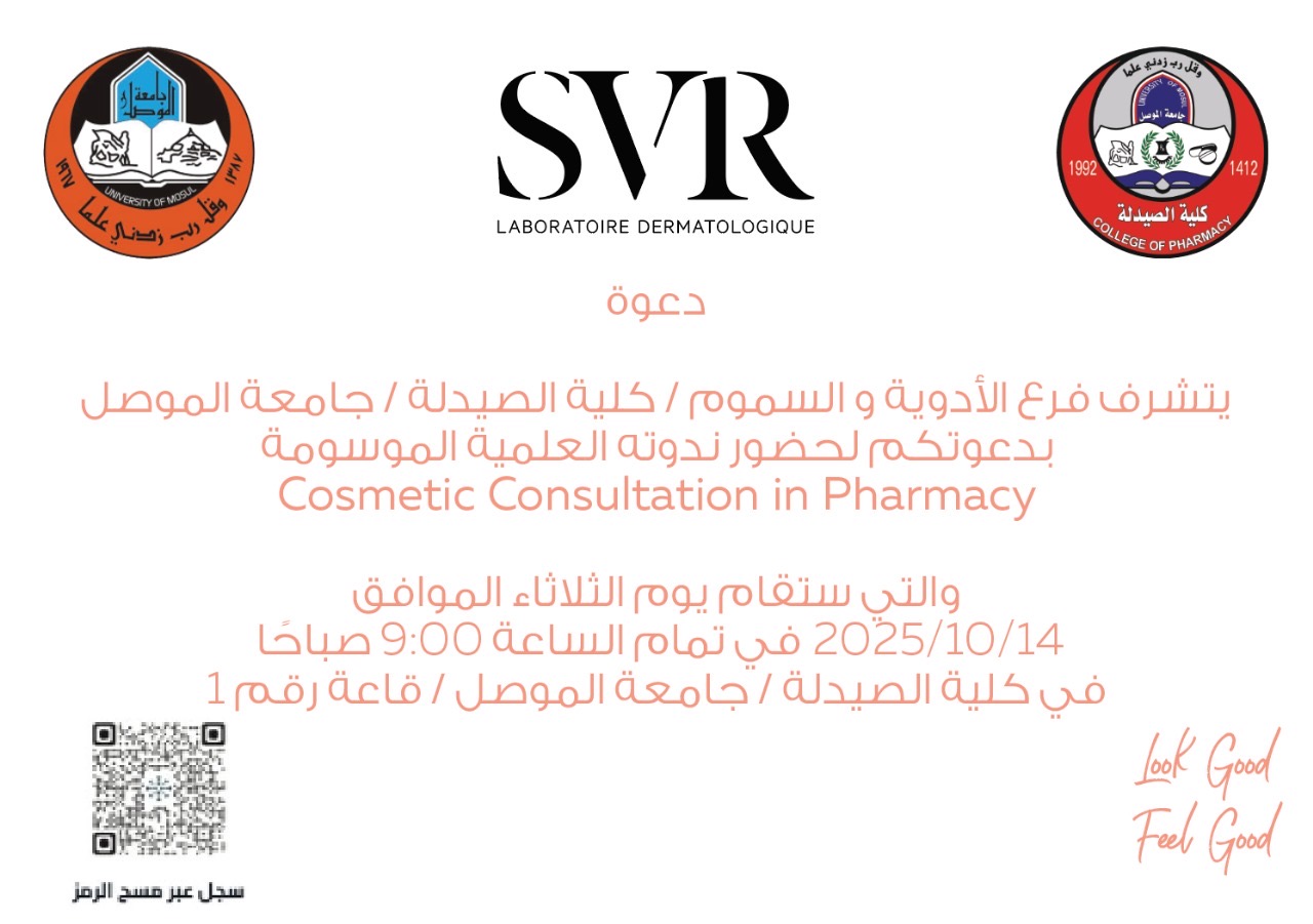 برعاية الأستاذ الدكتور قصي كمال الدين الاحمدي رئيس جامعة الموصل المحترموبإشراف مباشر من قبل الأستاذ المساعد الدكتورة زينة عبد المنعم عبد المجيد المحترمةتقيم كــــلية الصيدلة [إقرأ المزيد]
