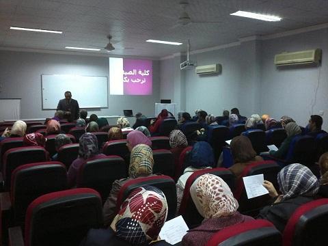 كلية الصيدلة-ورشة عمل بعنوان (الاساسيات في اجراء البحث العلمي)