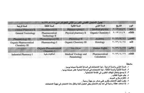 كلية الصيدلة- ابتدأت امتحانات نصف الفصل الدراسي الثاني