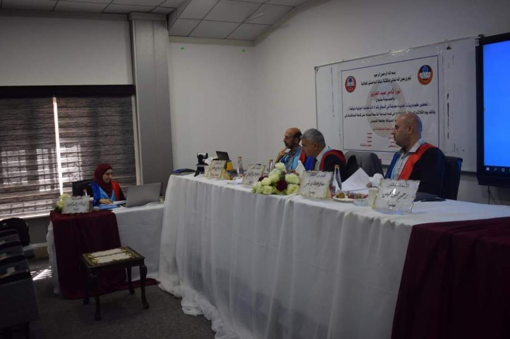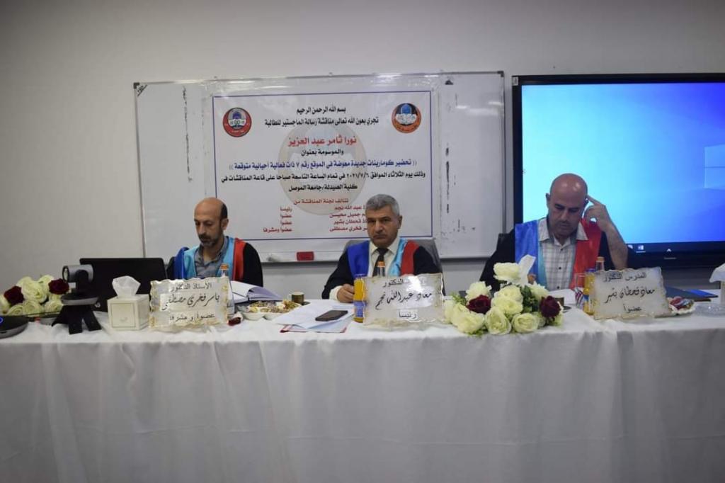 وقد حضرت المناقشة السيدة عميد كلية الصيدلة الاستاذ المساعد الدكتورة زينة عبدالمنعم عبدالمجيد و نخبة من أساتذة و منتسبي كلية الصيدلة و طلبة الدراسات العليا فيها.
