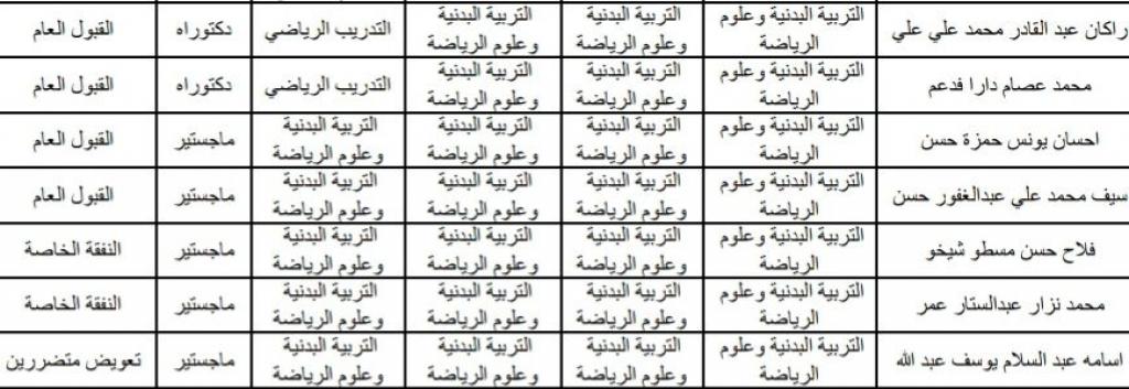 أسماء طلبة الدراسات العليا المشمولين بالتوسعة للعام الدراسي 2020-2021