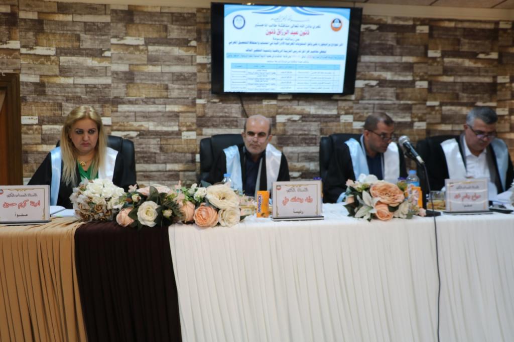 ترأس لجنة المناقشة الاستاذ الدكتور وليد وعدالله علي وعضوية كل من الاستاذ المساعد الدكتور صباح جاسم محمد و الاستاذ المساعد الدكتورة امينة كريم حسين، وبإشراف وعضوية الاستاذ المساعد الدكتور جمال شكري بسيم.