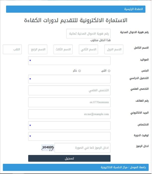 اطلاق استمارة التسجيل على دورات كفاءة الحاسوب للتقديم للدراسات العليا
