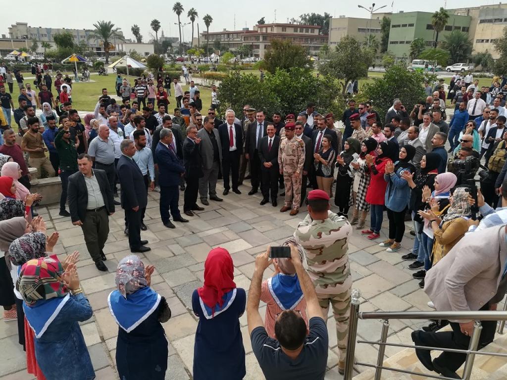 حضر الاستاذ الدكتور ضرغام جاسم محمد عميد كلية التربية البدنية وعلوم الرياضة الخميس 24/10/2019 احتفالية افتتاح نُصب الثور المجنح على حدائق المركز الطلابي والذي أهدته الحكومة الاسبانية إلى جامعة الموصل وبحضور الاستاذ الدكتور قصي كمال الدين الاحمدي رئيس جامعة الموصل وأعضاء مجلس المحافظة والسيد محافظ نينوى المهندس منصور المرعيد وقائد عمليات نينوى اللواء الركن نومان الزوبعي والسفيرين البريطاني والاسباني وبمشاركة متميزة من قبل طلاب وطالبات كليتنا(فرقة الكشافة) والسادة عمداء الكليات كافة . وتخلل هذا الحفل فعاليات وأنشطة متنوعة تغنت بحب العراق ودعت إلى التكاتف وبذل الجهود لأعمار مدينة الموصل والارتقاء بها