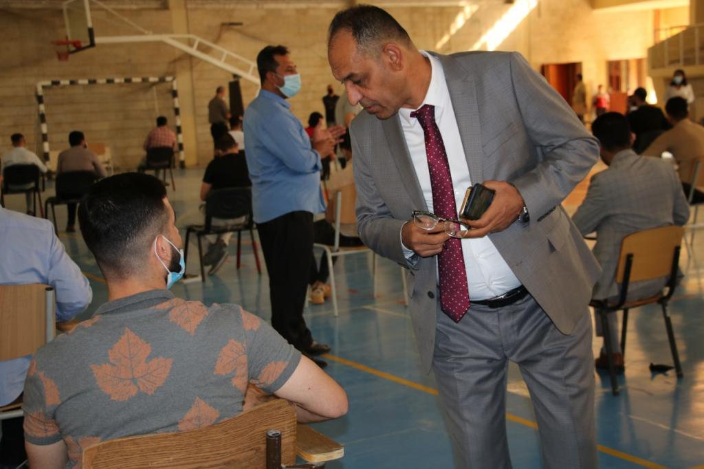 في ظل الاجراءات الوقائية من فايروس كورونا تفقد الدكتور احمد حامد السويدي عميد الكلية التربية البدنية وعلوم الرياضة سير العملية الامتحانية التي انطلقت صباح هذا اليوم الاثنين الموافق 19 تشرين الاول 2020 في جامعة الموصل للطلبة المتقدمين للدراسات العليا للعام الدراسي 2020 -2021 حيث اوعز بتوفير الأجواء المناسبة لإجراء الامتحان والتنافس على المقاعد الدراسية المخصصة لهذا العام،