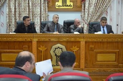 اوفد عدد من تدريسيي كلية التربية الرياضية في جامعة الموصل لمناقشة مشاريع بحوث طلبة الدراسات العليا في جامعة تكريت