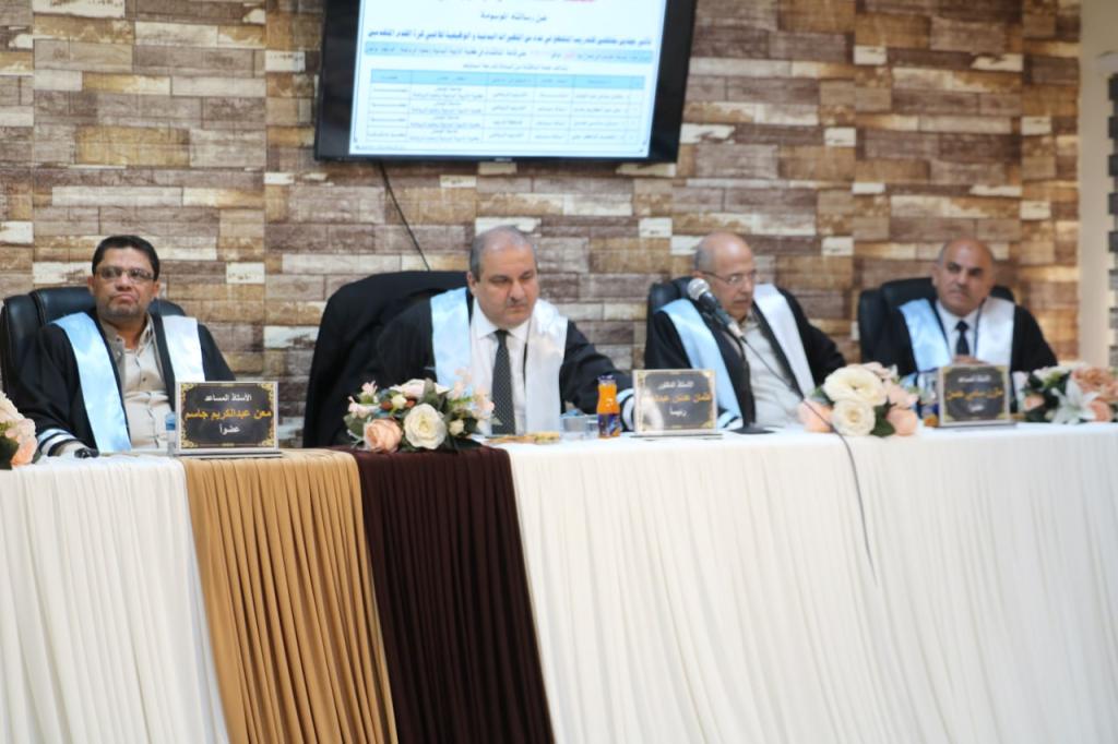 ترأس لجنة المناقشة الاستاذ الدكتور عثمان عدنان عبدالصمد وعضوية كل من الاستاذ المساعد الدكتور معن عبدالكريم جاسم، و الاستاذ المساعد مازن سامي حسن وباشراف وعضوية الاستاذ المساعد الدكتور محمد شاكرعلي المولى