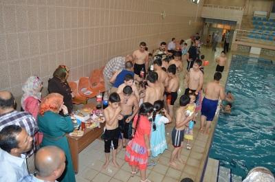 تم بعون الله تخرج دورة تعليم السباحة لفئة الاطفال والناشئين في يوم الاثنين الموافق 2/9/2013 في القاعة الداخلية للمسبح واستمرت الدورة شهر كامل وبواقع ثلاث وحدات تعليمية في الاسبوع زمن كل وحدة تعلميمية ساعة واحدة وتم توزيع الجوائز وبحضور اولياء امور الطلبة