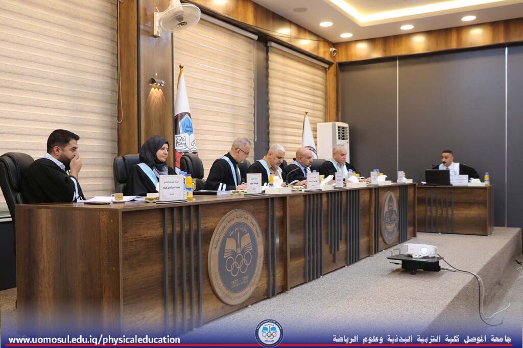 ناقشت كلية التربية البدنية وعلوم الرياضة بجامعة الموصل اطروحة دكتوراه عن ( تأثير اساليب الضغط الدفاعي (العالي والمتزن والواطي) في عدد من المتغيرات البدنية والمهارات الدفاعية ومؤشر التعب العضلي للاعبي كرة قدم الصالات)