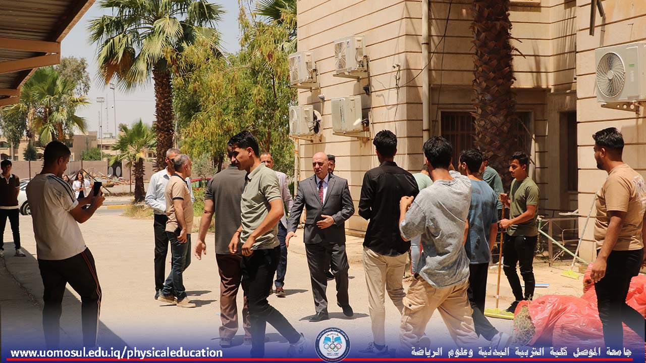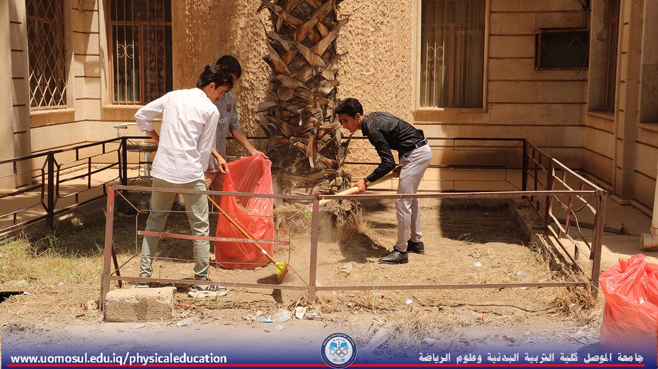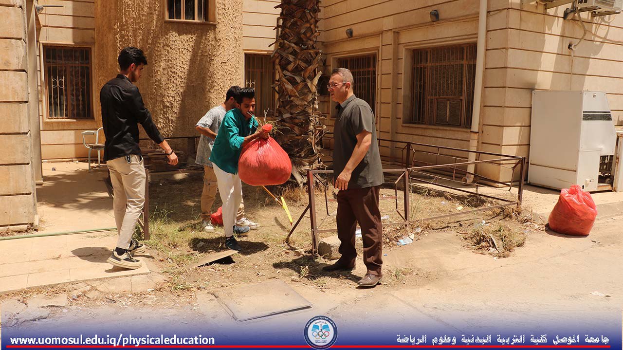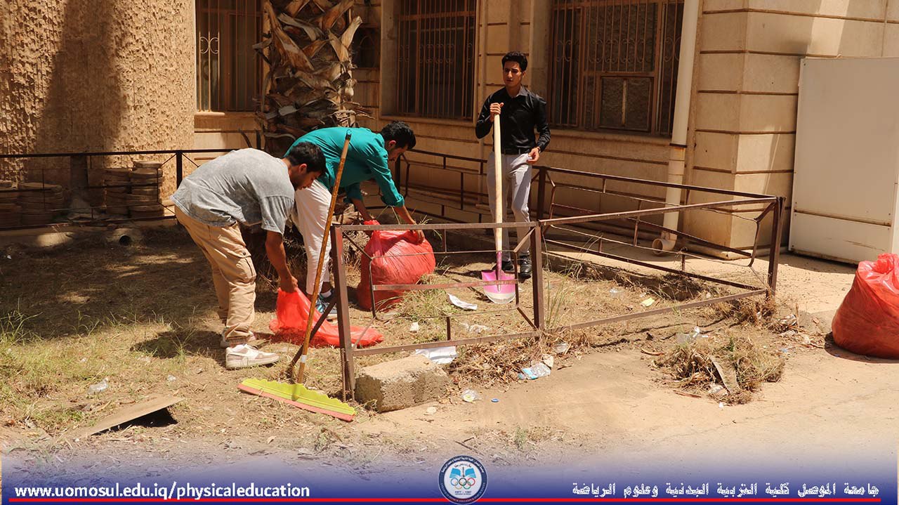 انطلاقاً من حرص كلية التربية البدنية وعلوم الرياضة على تعزيز روح العمل التطوعي لدى طلبتها، وبإشراف مباشر من الأستاذ الدكتور نبراس يونس محمد عميد الكلية، نُظمت اليوم الاثنين الموافق 23/6/2025 حملة طلابية تطوعية لتنظيم وترتيب أروقة وحدائق الكلية.