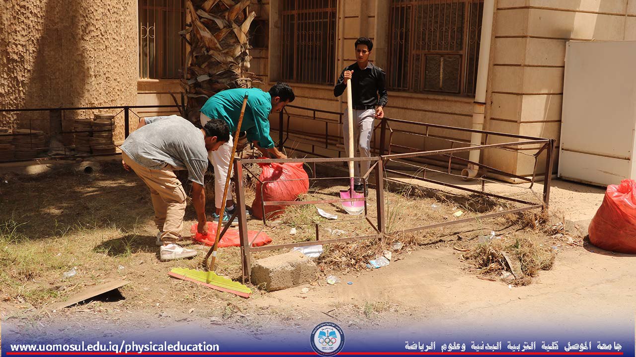 حملة تطوعية لتنظيم أروقة وحدائق كلية التربية البدنية وعلوم الرياضة