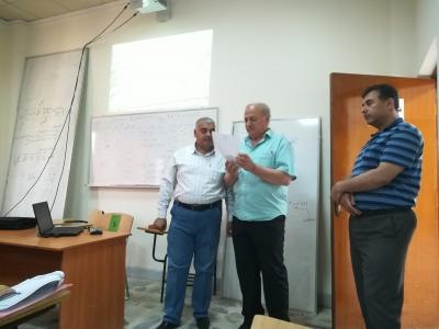 تفقد السيد عميد كلية التربية البدنية وعلوم الرياضة وكالة الاستاذ الدكتور ضياء قاسم الخياط دورة سلامة اللغة العربية واطلع سيادته عن كثب منهاج الدورة واكد على ضرورة مشاركة جميع التدريسيين والموظفين فيها كما اعرب المشاركين عن فائدة مثل هكذ دورات واثنوا على القائمين بها وثمنوا جهد الاستاذ بسام خلف في القاء المحاضرة