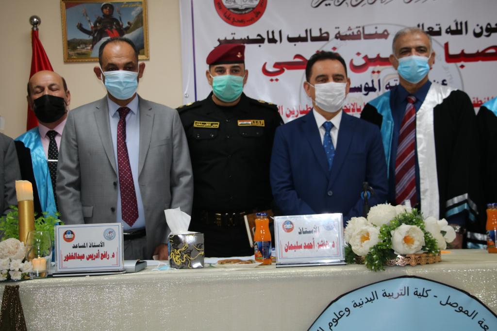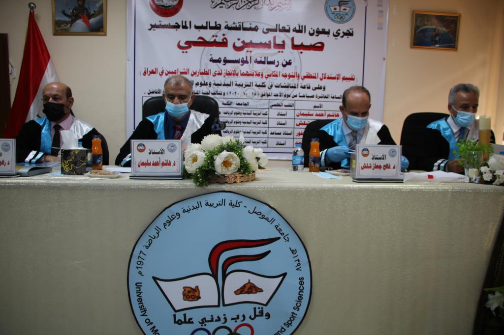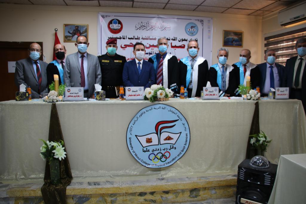 بحضور الاستاذ الدكتور قصي كمال الدين الاحمدي رئيس جامعة الموصل والاستاذ الدكتور منير سالم طه المعاون العلمي لجامعة الموصل وعميد كلية التربية البدنية وعلوم الرياضة الدكتور احمد حامد السويدي