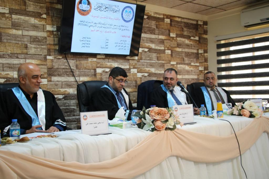 ناقشت كلية التربية البدنية وعلوم الرياضة بجامعة الموصل رسالة ماجستير للطالب زيد احمد شيبو عن دراسة العلاقة بين بعض المتغيرات البايوكينماتيكية وبعض القدرات التوافقية والدقة لضربتي الجزاء (6 متر) و (10متر) بوجه القدم من الأمام للاعبي (FUTSAL) في اختصاص البايوميكانيك الرياضي يوم الخميس الموافق 10 /3 / 2022.