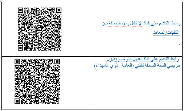 يرجى التفضل بالعلم بأن QR ادناه يتضمن روابط النقل، الاستضافة، وقناة تعديل الترشيح، وذلك لغرض تسهيل الإجراءات الخاصة بعملية النقل والترشيح والمتابعة.