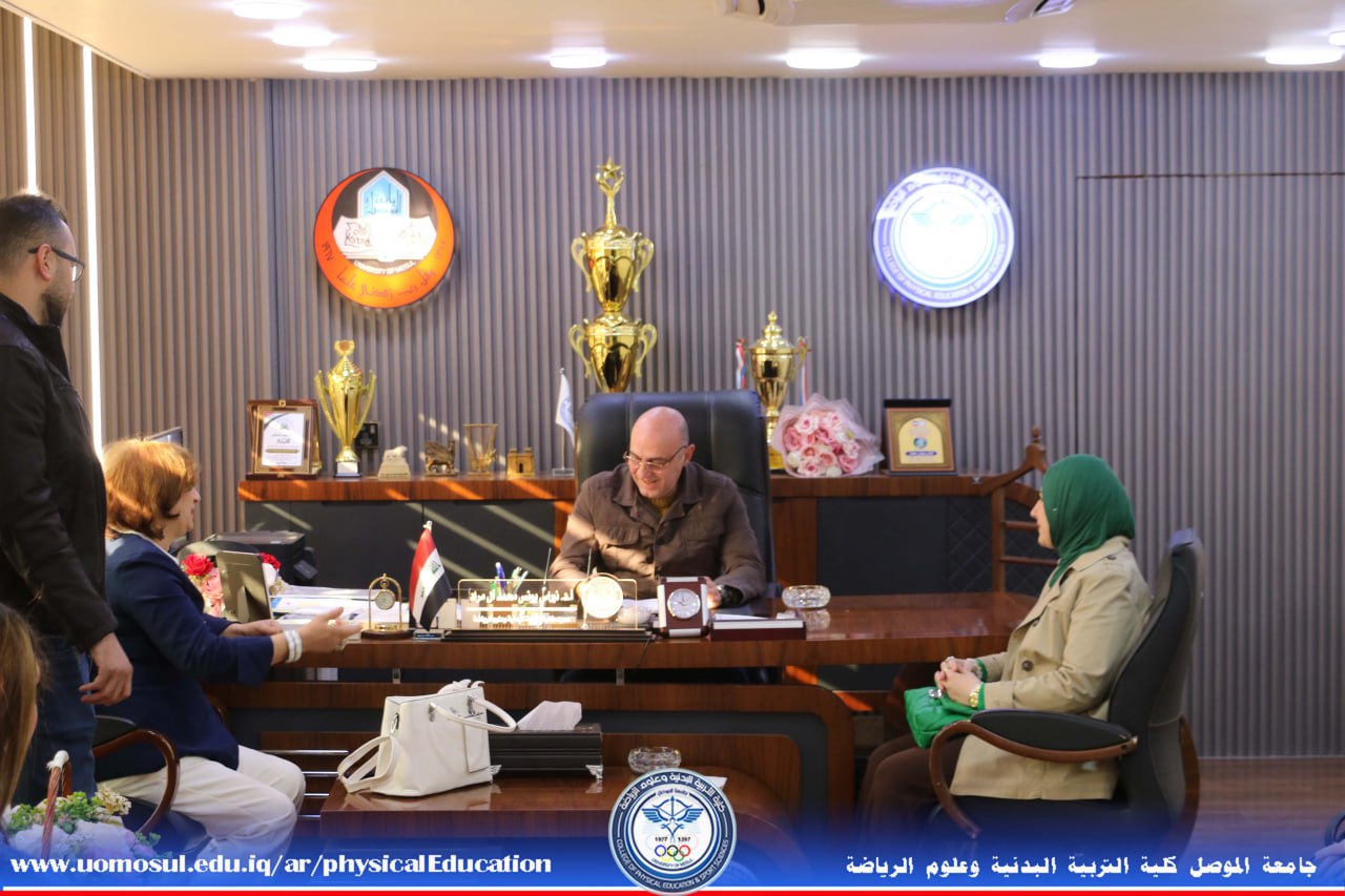استقبل الأستاذ الدكتور نبراس يونس آل مراد عميد كلية التربية البدنية وعلوم الرياضة وفدًا من جامعة الحمدانية خلال زيارتهم إلى الكلية.
