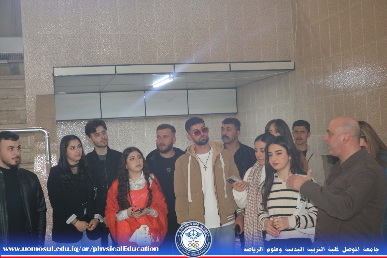 رافَق السيد العميد الوفد في جولة ميدانية داخل أروقة الكلية وملاعبها حيث اطّلعوا على البنية التحتية والإمكانات العلمية والرياضية التي تتمتع بها الكلية تأتي هذه الزيارة في إطار تعزيز التعاون العلمي والأكاديمي وتبادل الخبرات بين الجامعات العراقية بما يسهم في الارتقاء بالعملية التعليمية وتطوير البرامج الرياضية.