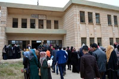 طلبة كلية التربية البدنية وعلوم الرياضة بؤدون الامتحانات التكميلية للعام الدراسي 2013 / 2014 في موقع برطلة الامتحاني