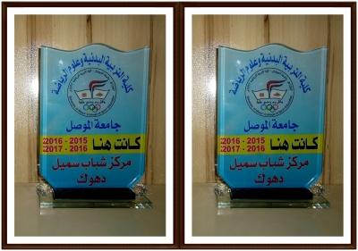 كلية التربية البدنية وعلوم الرياضة تقدم شهادة تقديرية للسيد مدير مركز شباب سميل / دهوك